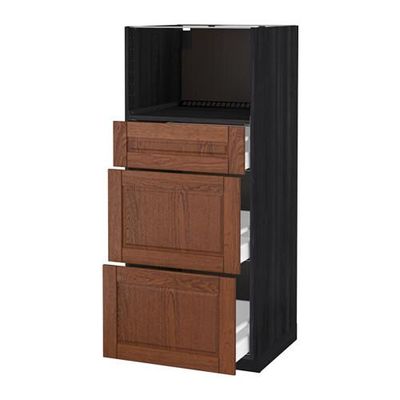 МЕТОД / МАКСИМЕРА Высокий шкаф д/СВЧ с 3 ящиками - Филипстад коричневый, под дерево черный