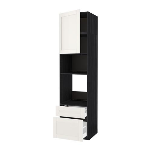 МЕТОД / МАКСИМЕРА Высок шкаф д/духовки/СВЧ/дверца/2ящ - под дерево черный, Сэведаль белый, 60x60x240 см