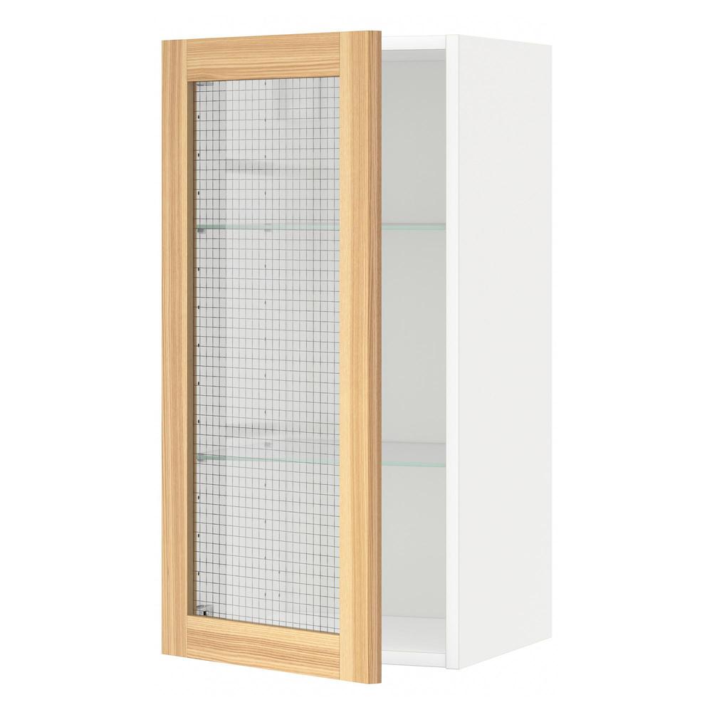 МЕТОД Навесной шкаф с полками/стекл дв - белый, Торхэмн естественный ясень, 40x80 см