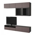 БЕСТО Шкаф для ТВ, комбин/стеклян дверцы - черно-коричневый/Вальвикен темно-коричневый, прозрачное стекло, направляющие ящика, плавно закр