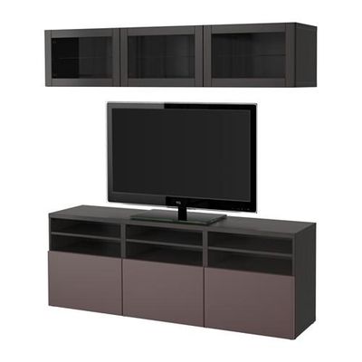 БЕСТО Шкаф для ТВ, комбин/стеклян дверцы - черно-коричневый/Вальвикен темно-коричневый, прозрачное стекло, направляющие ящика, плавно закр