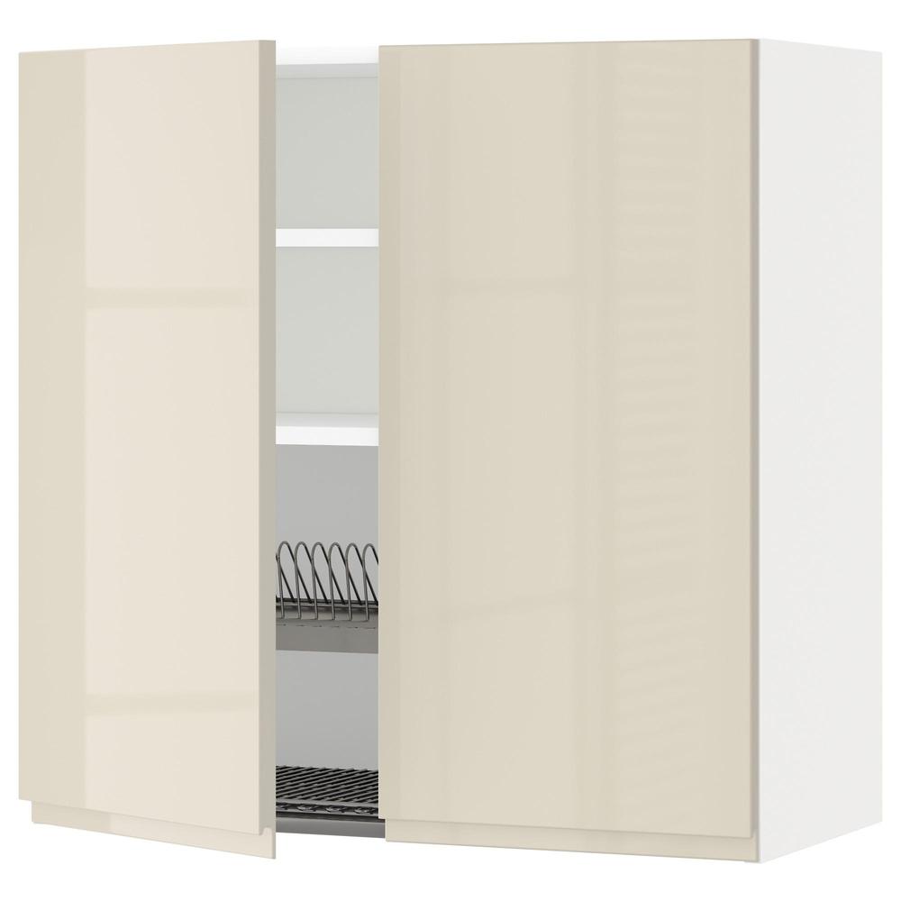 МЕТОД Навесной шкаф с посуд суш/2 дврц - белый, Воксторп глянцевый светло-бежевый, 80x80 см