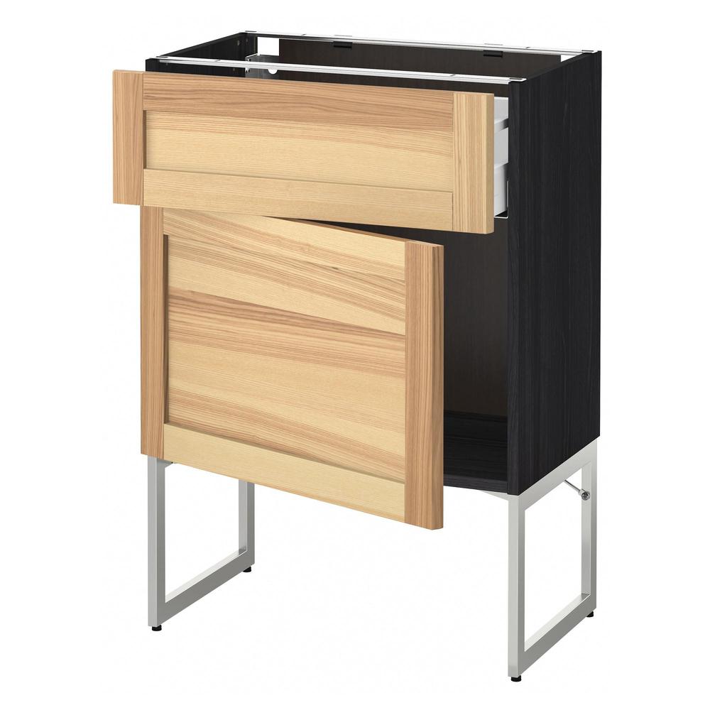 МЕТОД / МАКСИМЕРА Напольный шкаф с ящиком/дверью - под дерево черный, Торхэмн естественный ясень, 60x37x60 см