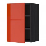 МЕТОД Шкаф навесной с полкой - под дерево черный, Ерста глянцевый оранжевый, 60x80 см