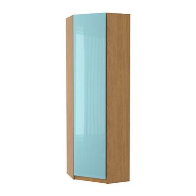 ПАКС Гардероб угловой - Фардаль глянцевый светлая бирюза, под дуб, 73/73x236 см