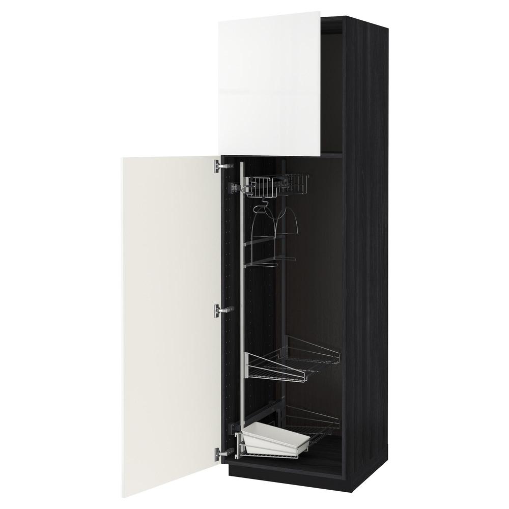МЕТОД Выс шк с отд д/акс д/убрк - под дерево черный, Рингульт глянцевый белый, 60x60x200 см