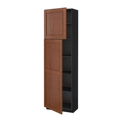 МЕТОД Высокий шкаф с полками/2 дверцы - под дерево черный, Филипстад коричневый, 60x37x200 см
