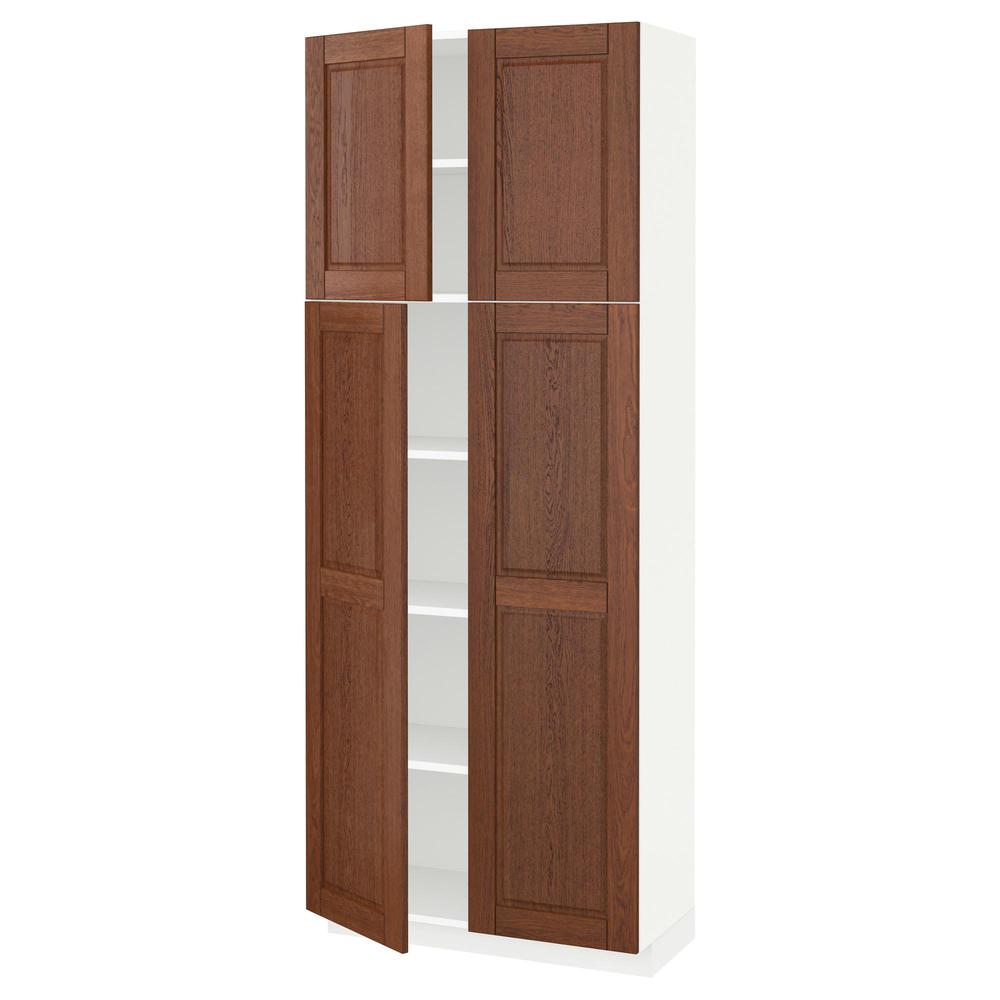 МЕТОД Высокий шкаф с полками/4 дверцы - белый, Филипстад коричневый, 80x37x200 см