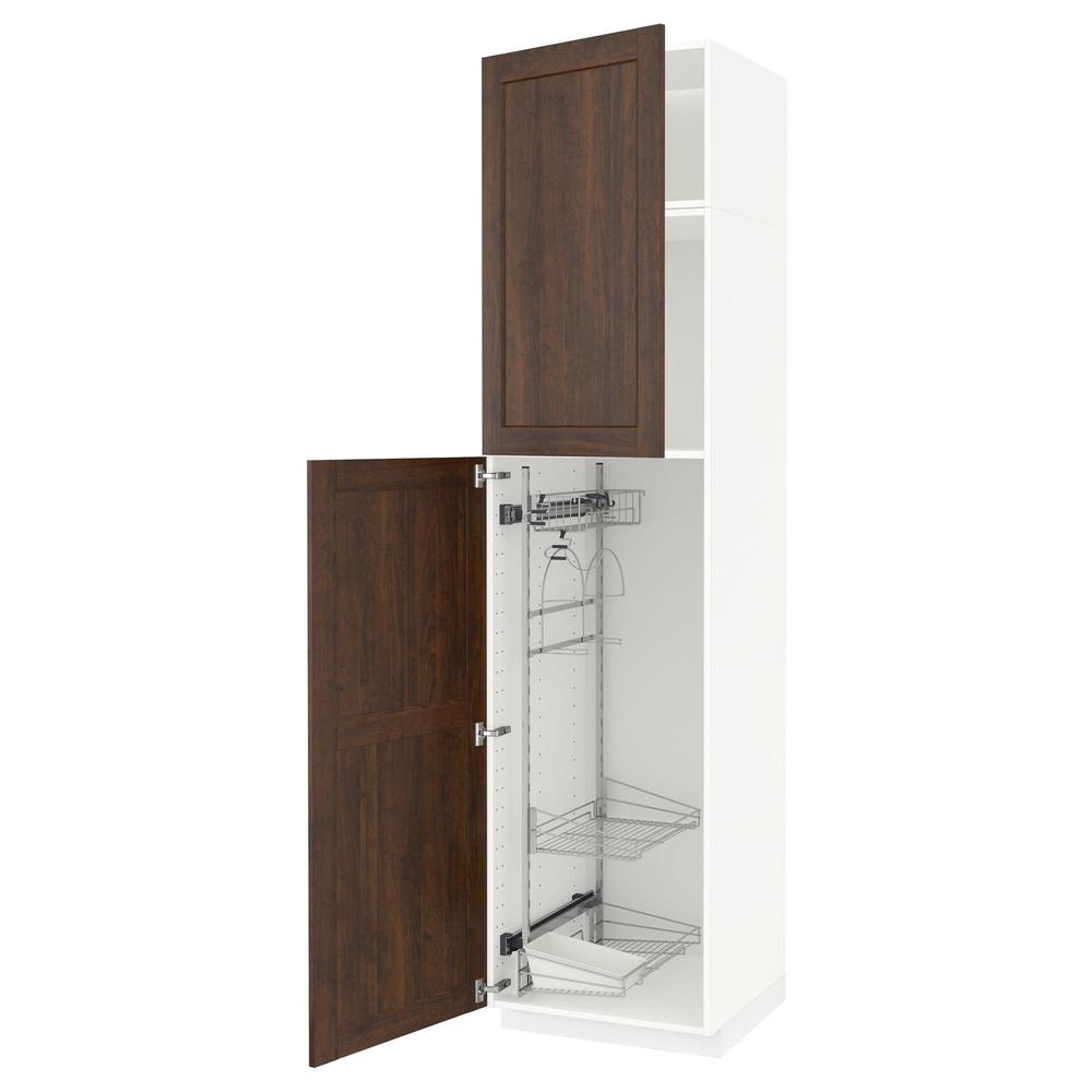 МЕТОД Выс шк с отд д/акс д/убрк - белый, Эдсерум под дерево коричневый, 60x60x240 см