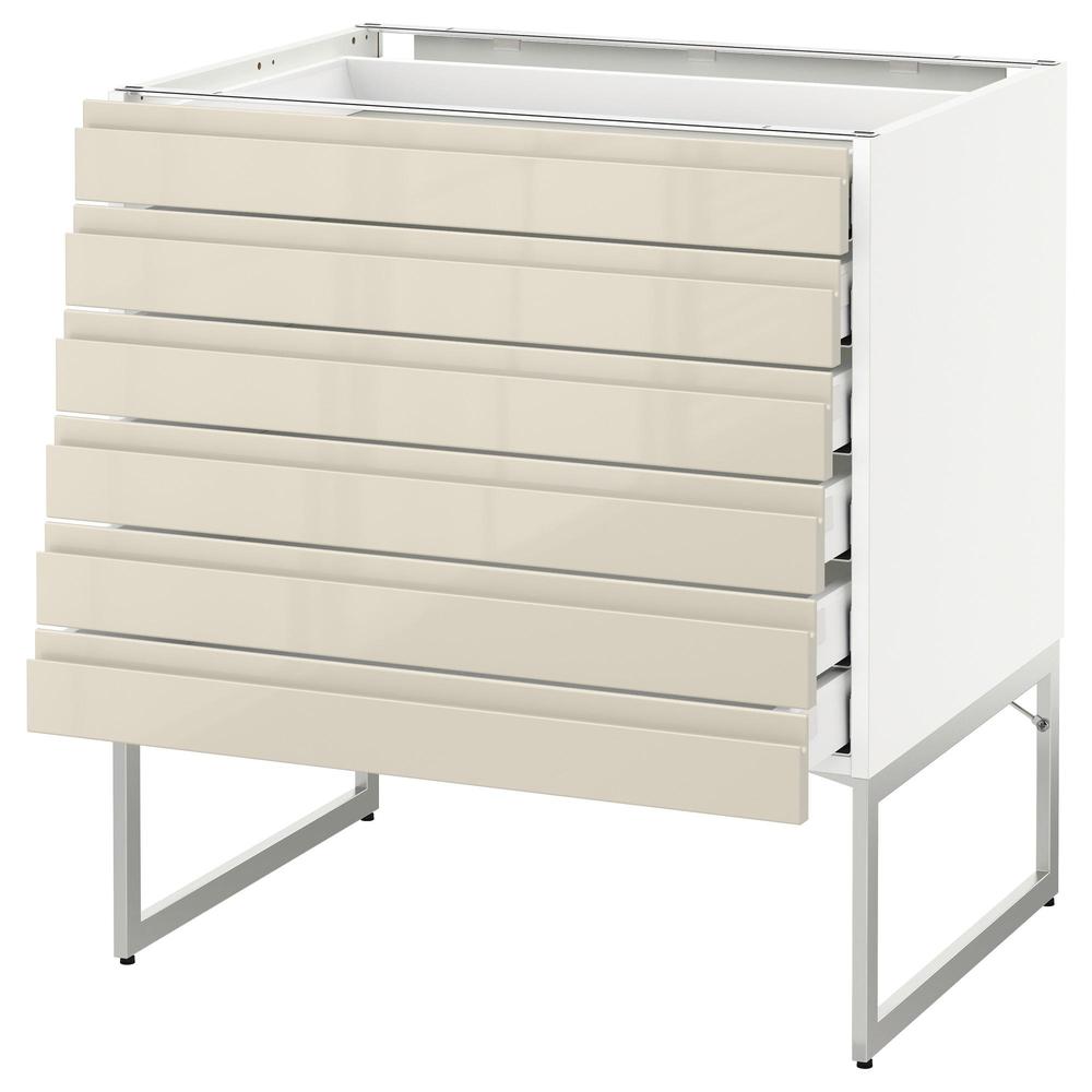 МЕТОД / МАКСИМЕРА Напольн шкаф 6фронт пнл/6 низ ящ - белый, Воксторп глянцевый светло-бежевый, 80x60x60 см