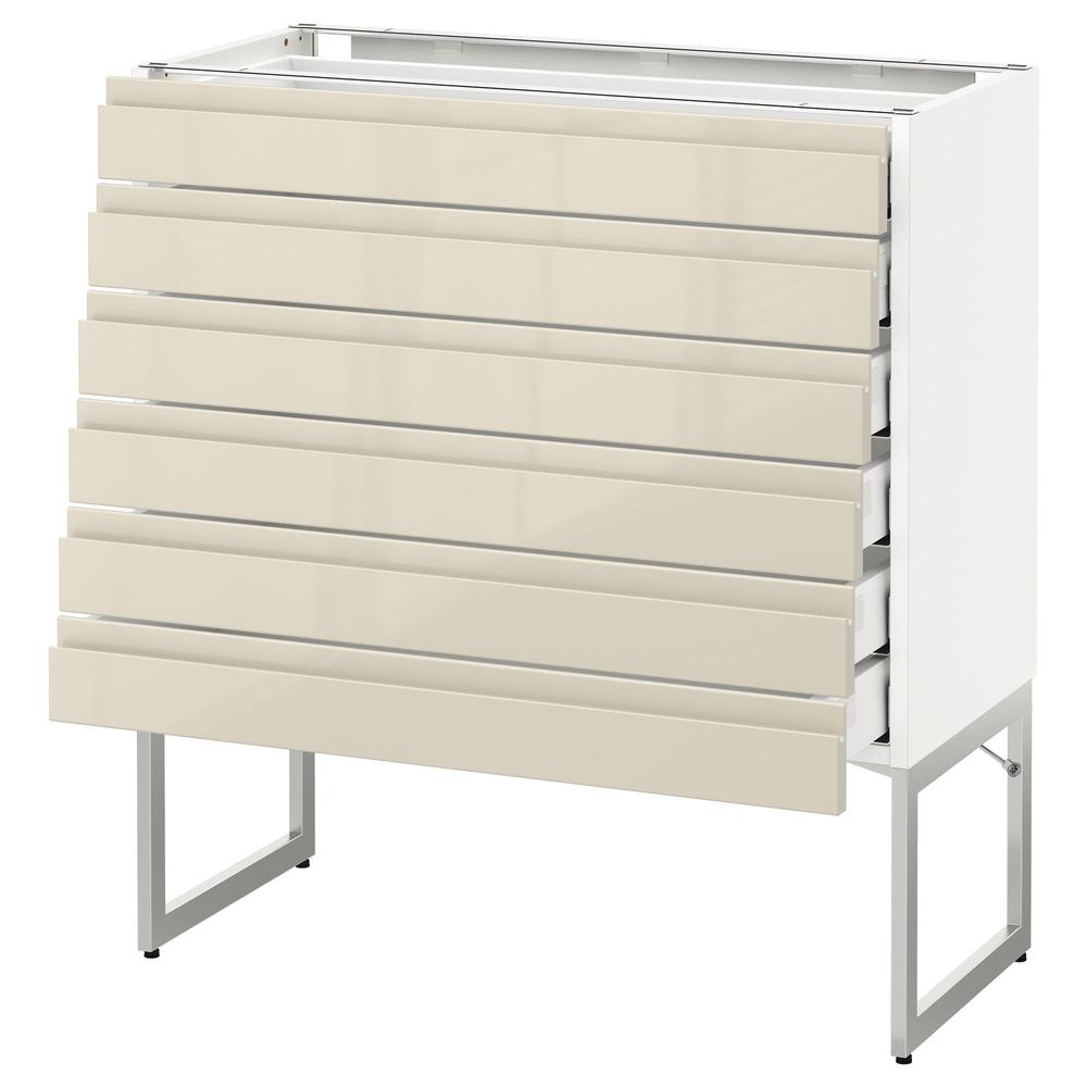 МЕТОД / МАКСИМЕРА Напольн шкаф 6фронт пнл/6 низ ящ - белый, Воксторп глянцевый светло-бежевый, 80x37x60 см