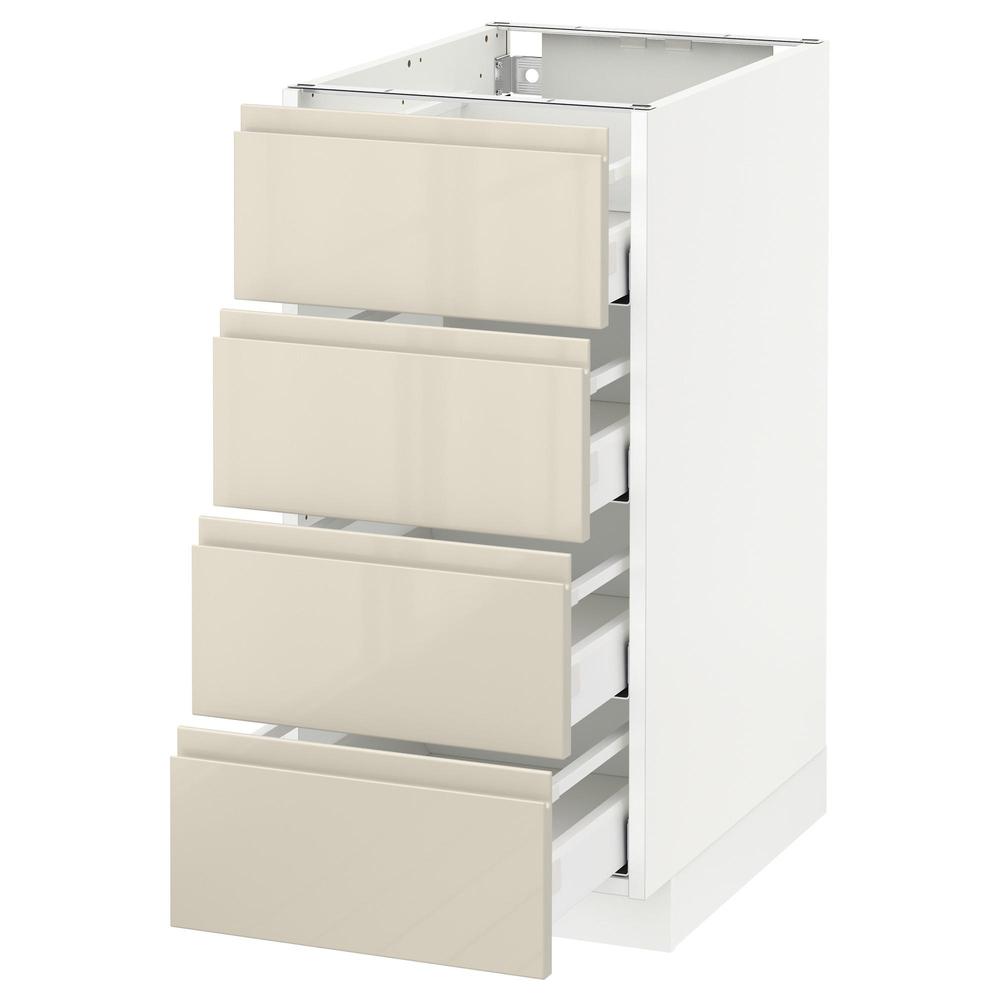 МЕТОД / МАКСИМЕРА Напольн шкаф 4 фронт панели/4 ящика - белый, Воксторп глянцевый светло-бежевый, 40x60 см
