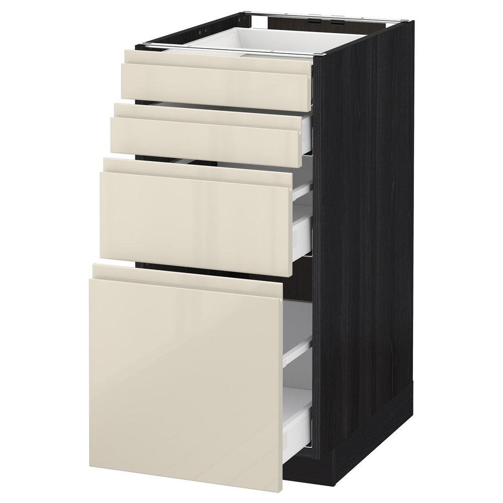 МЕТОД / МАКСИМЕРА Напольн шкаф 4 фронт панели/4 ящика - под дерево черный, Воксторп глянцевый светло-бежевый, 40x60 см