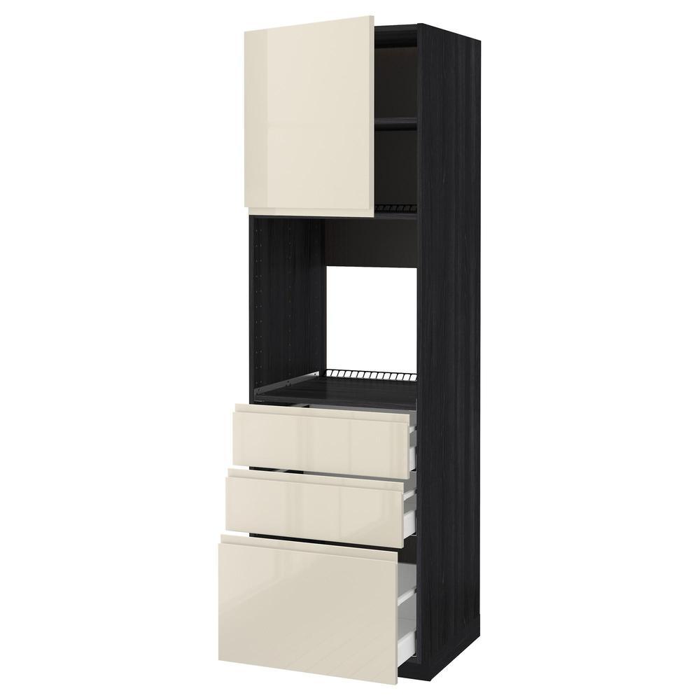 МЕТОД / МАКСИМЕРА Высокий шкаф д/духовки/дверь/3ящика - под дерево черный, Воксторп глянцевый светло-бежевый, 60x60x200 см