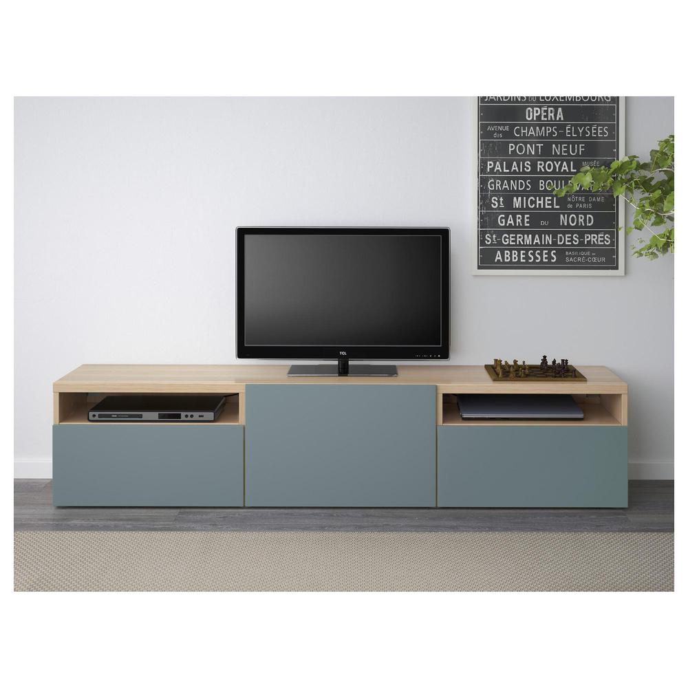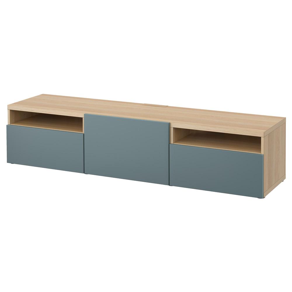 БЕСТО Тумба под ТВ - под беленый дуб/Вальвикен серо-бирюзовый, направляющие ящика, плавно закр