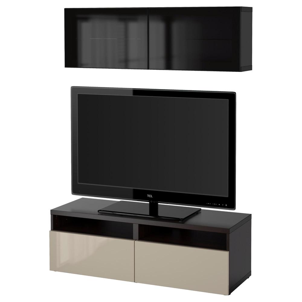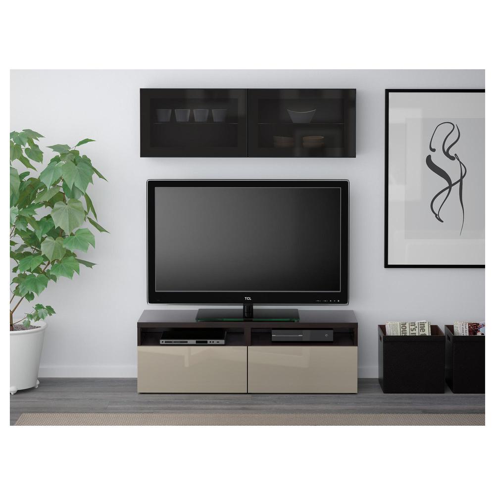 БЕСТО Шкаф для ТВ, комбин/стеклян дверцы - черно-коричневый/Сельсвикен глянцевый/бежевый/дымчатое стекло, направляющие ящика,нажимные 0.0/5 оценка (0 голосов)