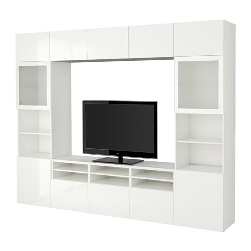 БЕСТО Шкаф для ТВ, комбин/стеклян дверцы - белый/Сельсвикен глянцевый/белый матовое стекло, направляющие ящика, плавно закр