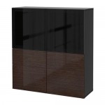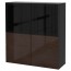 БЕСТО Комбинация д/хранения+стекл дверц - черно-коричневый/Сельсвикен глянцевый/коричневый дымчат стекло, направляющие ящика,нажимные