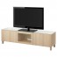 БЕСТО Тумба под ТВ, с дверцами - Лаппвикен под беленый дуб, прозрачное стелко, 180x40x38 см, направляющие ящика,нажимные