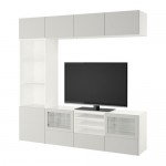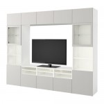 БЕСТО Шкаф для ТВ, комбин/стеклян дверцы - белый/Лаппвикен светло-серый прозрачное стекло, направляющие ящика,нажимные