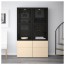 БЕСТО Комбинация д/хранения+стекл дверц - черно-коричневый Синдвик/Инвикен ясеневый шпон, направляющие ящика,нажимные
