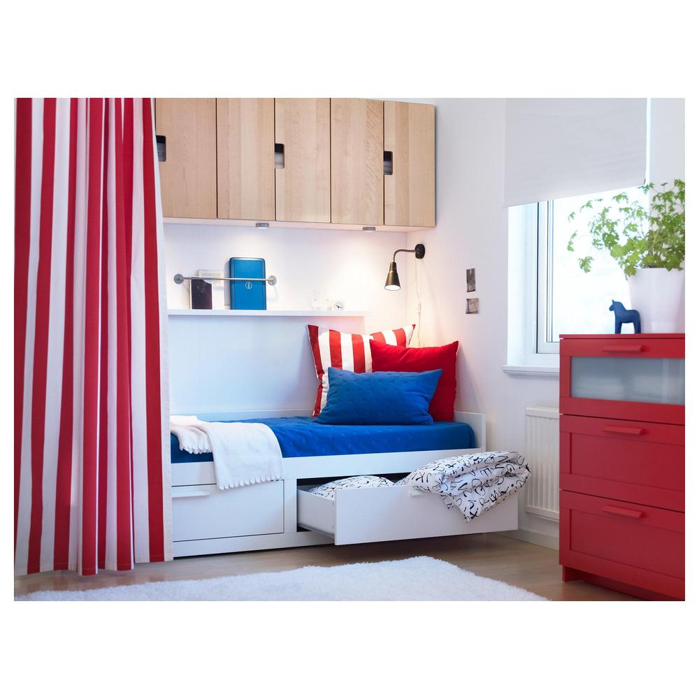 БРИМНЭС Кушетка с 2 матрасами/2 ящиками - белый/Малфорс средней жесткости