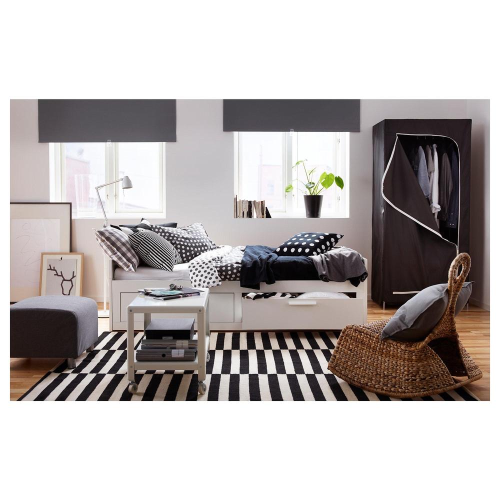 -Одеяла и подушки днем можно убирать в большие наволочки и использовать в качестве диванных подушек. Практичное решение для хранения и отличная опора для спины!