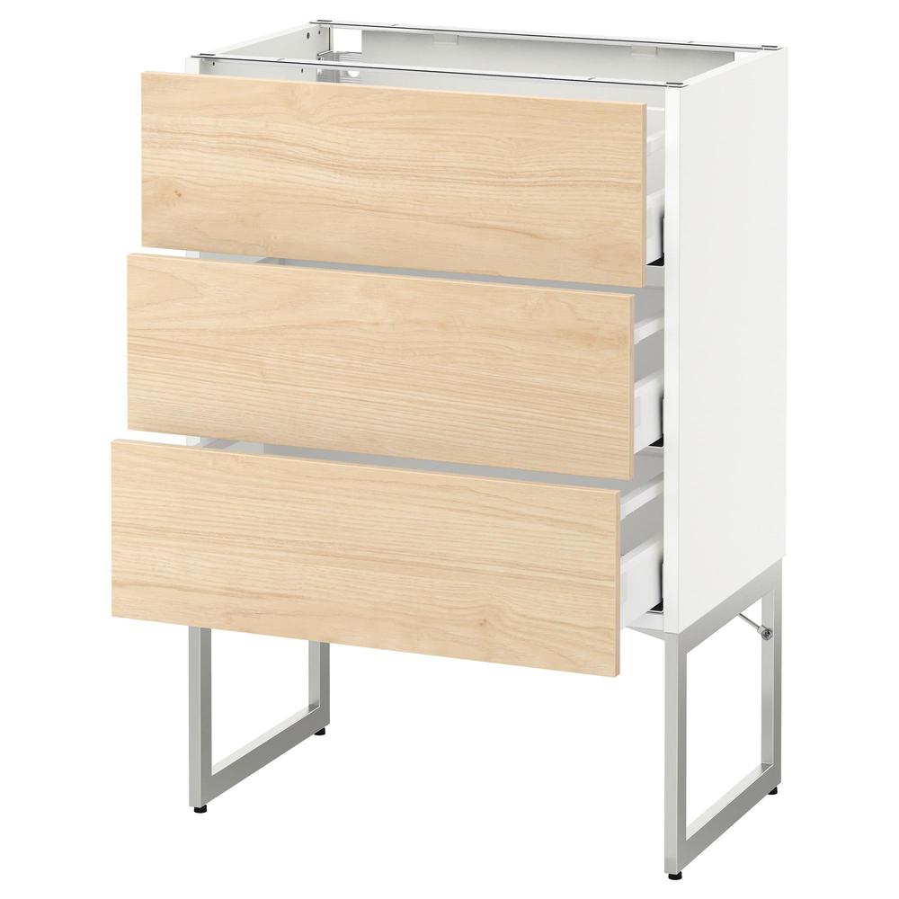 МЕТОД / МАКСИМЕРА Нплн шк 3 фрнт/3 средн ящика - белый, Аскерсунд под светлый ясень, 60x37x60 см