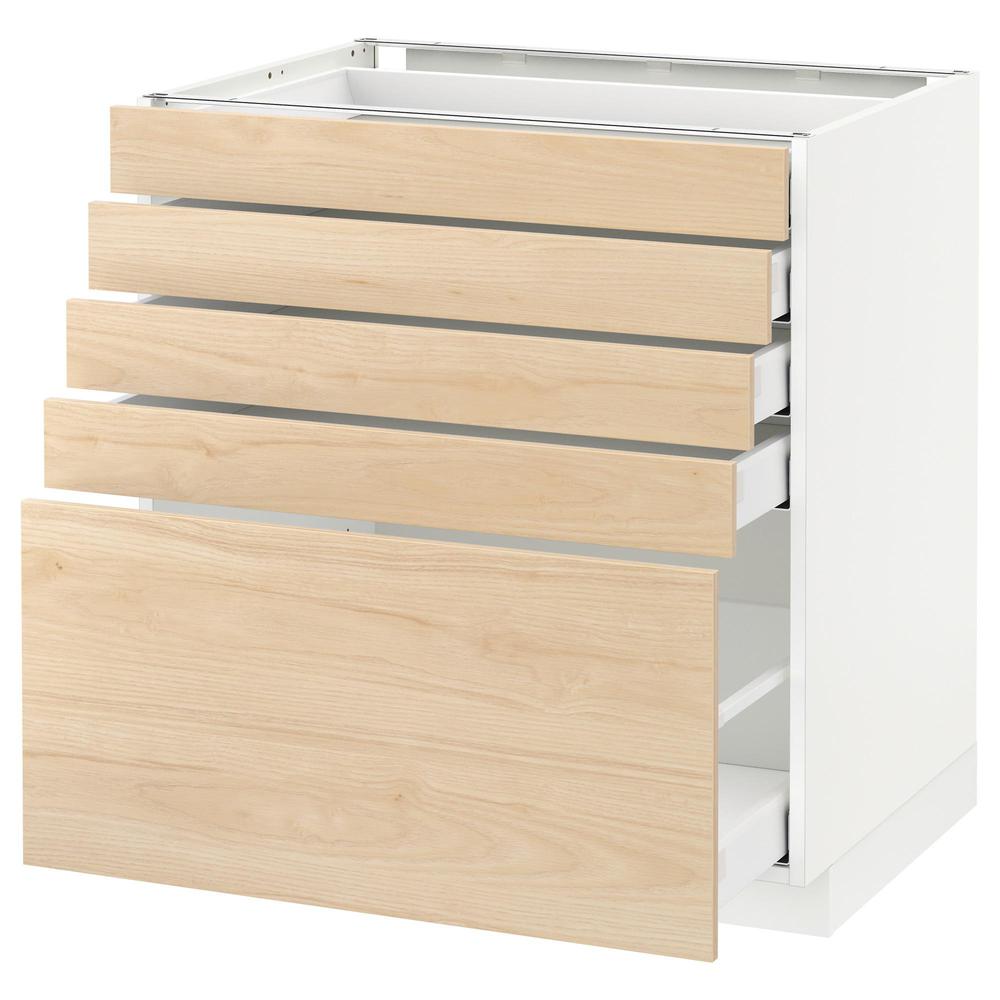МЕТОД / МАКСИМЕРА Напольный шкаф с 5 ящиками - белый, Аскерсунд под светлый ясень, 80x60 см