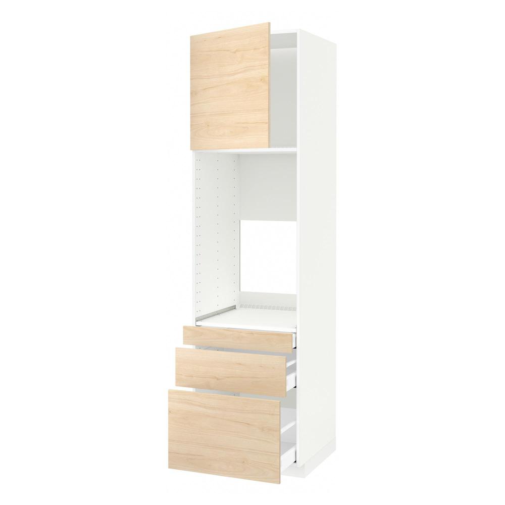 МЕТОД / МАКСИМЕРА Выс шкаф д/двойн духовки/3ящ/дверца - белый, Аскерсунд под светлый ясень, 60x60x220 см