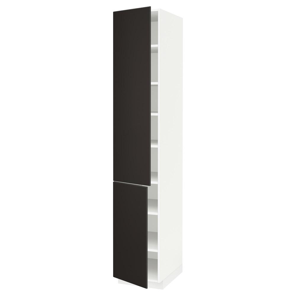 МЕТОД Высокий шкаф с полками/2 дверцы - белый, Кунгсбакка антрацит, 40x60x220 см
