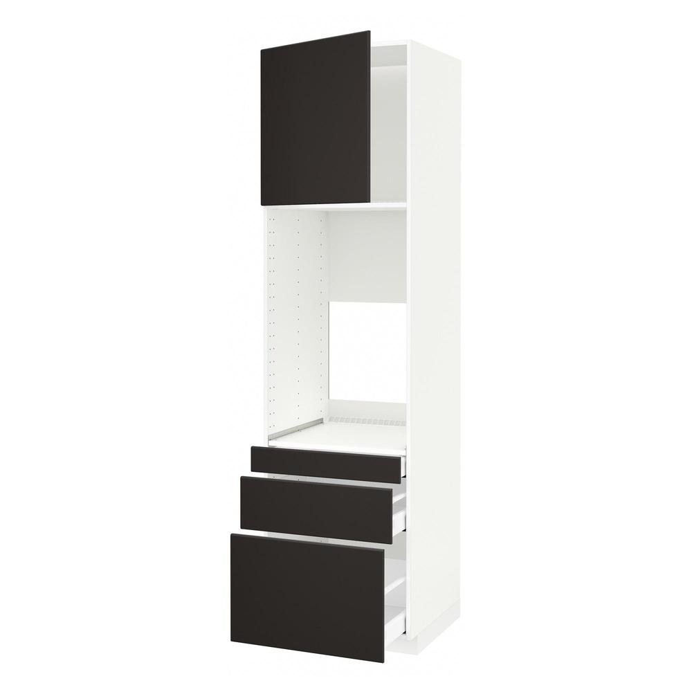 МЕТОД / МАКСИМЕРА Выс шкаф д/двойн духовки/3ящ/дверца - белый, Кунгсбакка антрацит, 60x60x220 см