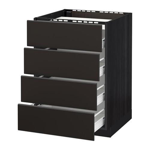 МЕТОД / ФОРВАРА Напольн шкаф/4фронт пнл/4ящика - под дерево черный, Кунгсбакка антрацит, 60x60 см