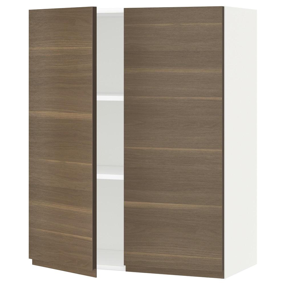 МЕТОД Навесной шкаф с полками/2дверцы - белый, Воксторп под грецкий орех, 80x100 см