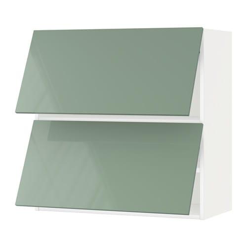 МЕТОД Навесной шкаф/2 дверцы, горизонтал - белый, Калларп глянцевый светло-зеленый, 80x80 см