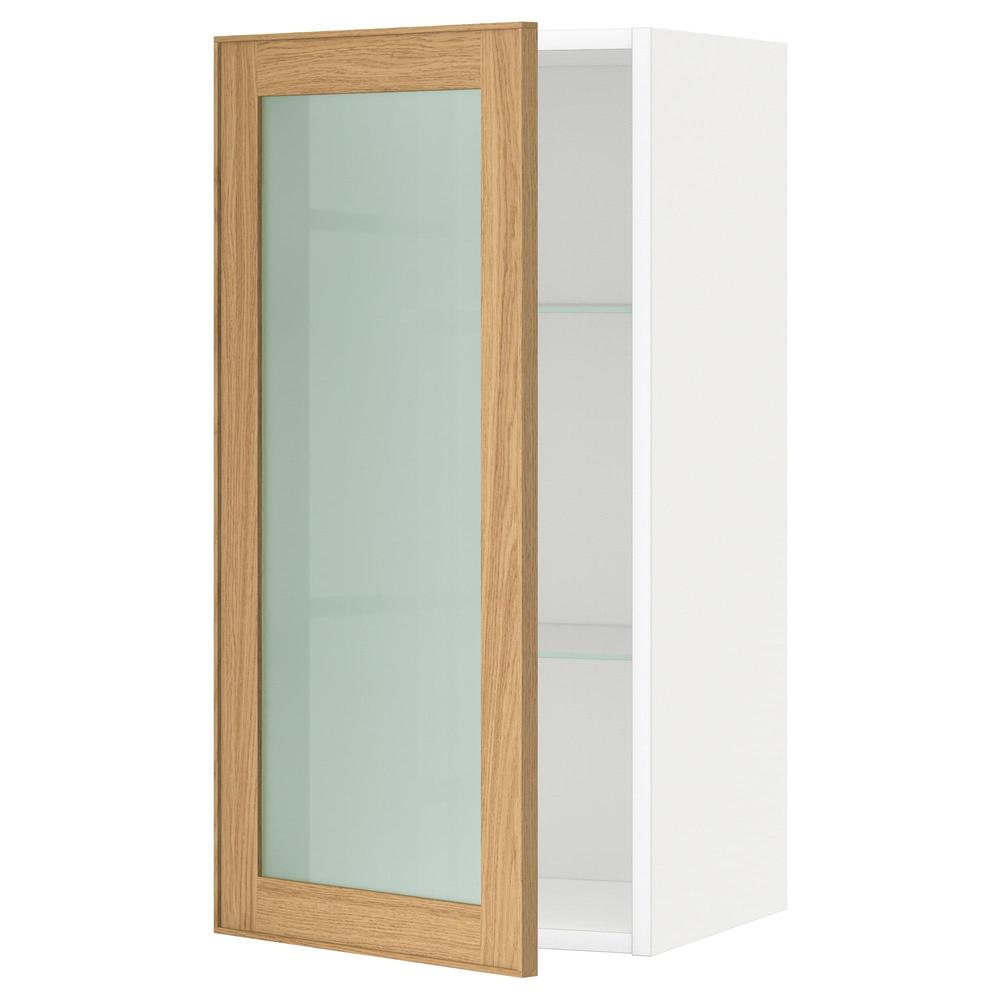 МЕТОД Навесной шкаф с полками/стекл дв - белый, Экестад дуб, 40x80 см