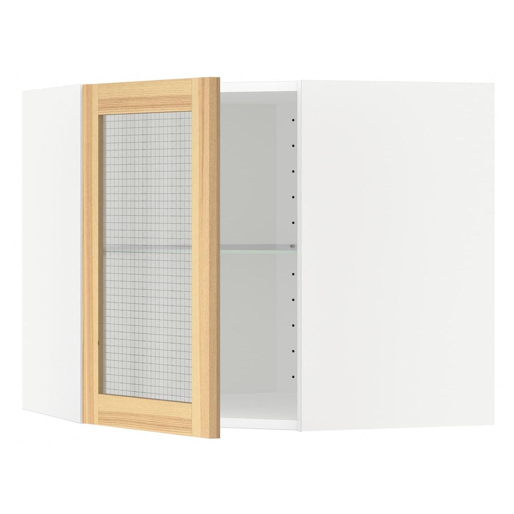 МЕТОД Углов навесн шк с полками/сткл дв - белый, Торхэмн естественный ясень, 68x60 см