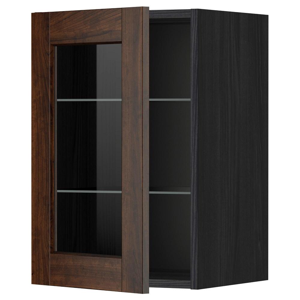 МЕТОД Навесной шкаф с полками/стекл дв - под дерево черный, Эдсерум под дерево коричневый, 40x60 см
