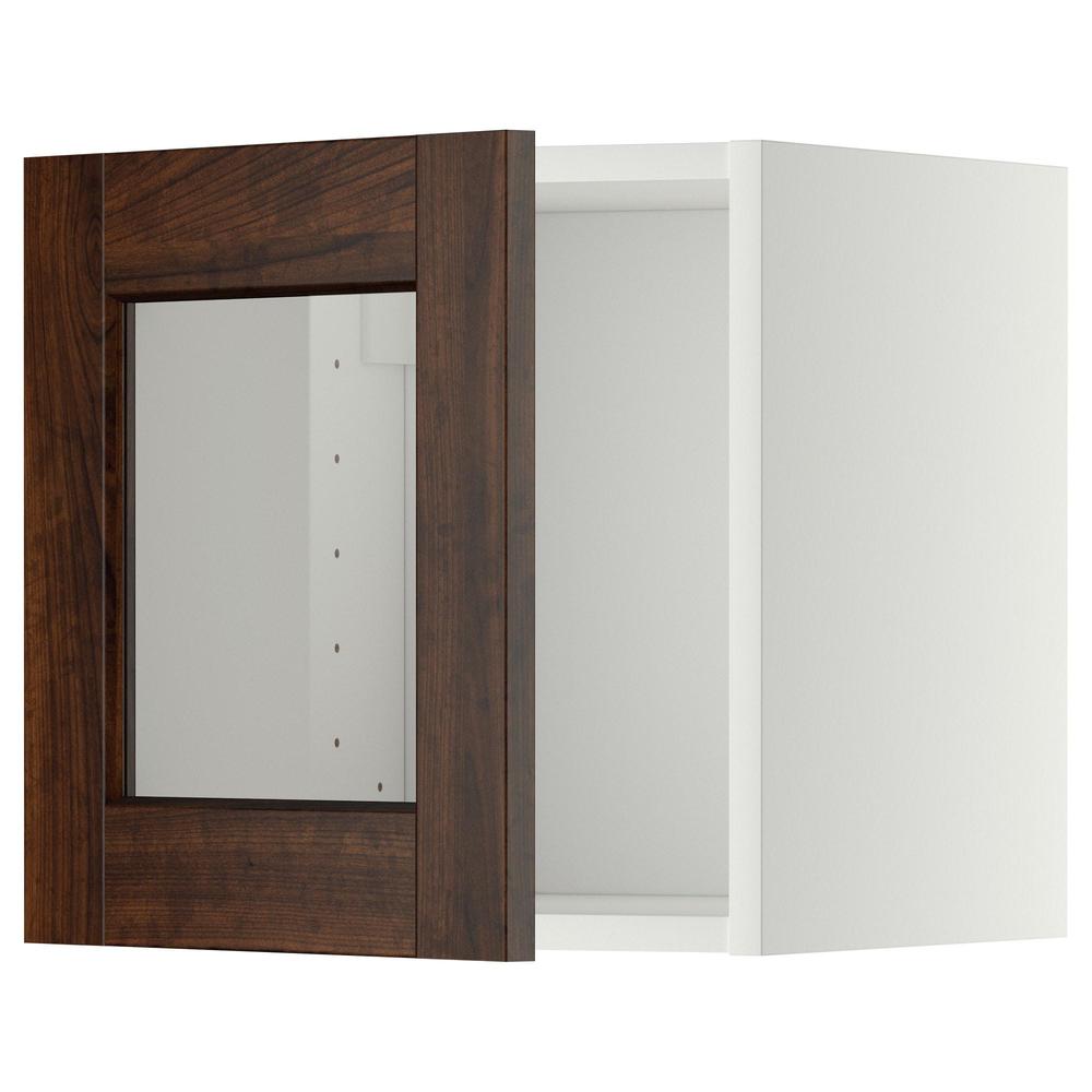 МЕТОД Навесной шкаф со стеклянной дверью - белый, Эдсерум под дерево коричневый