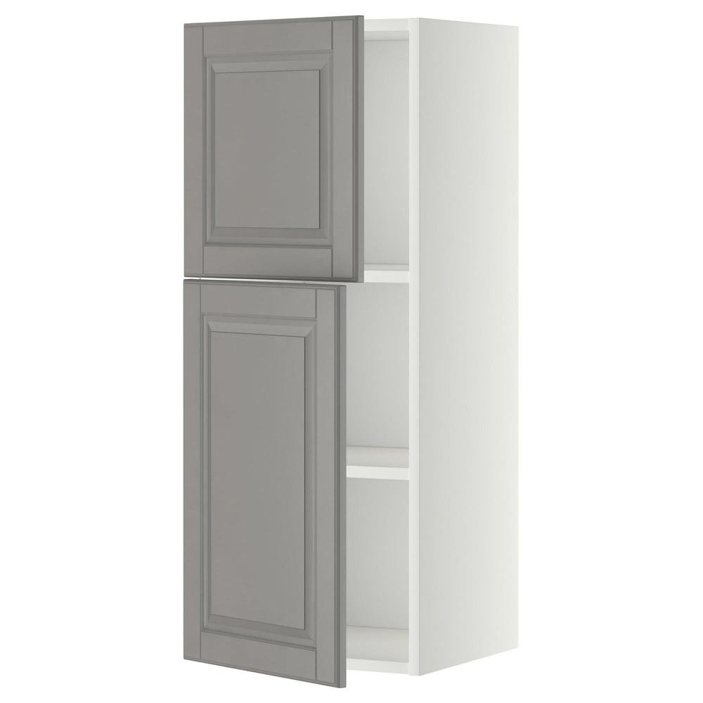 МЕТОД Навесной шкаф с полками/2дверцы - белый, Будбин серый, 40x100 см