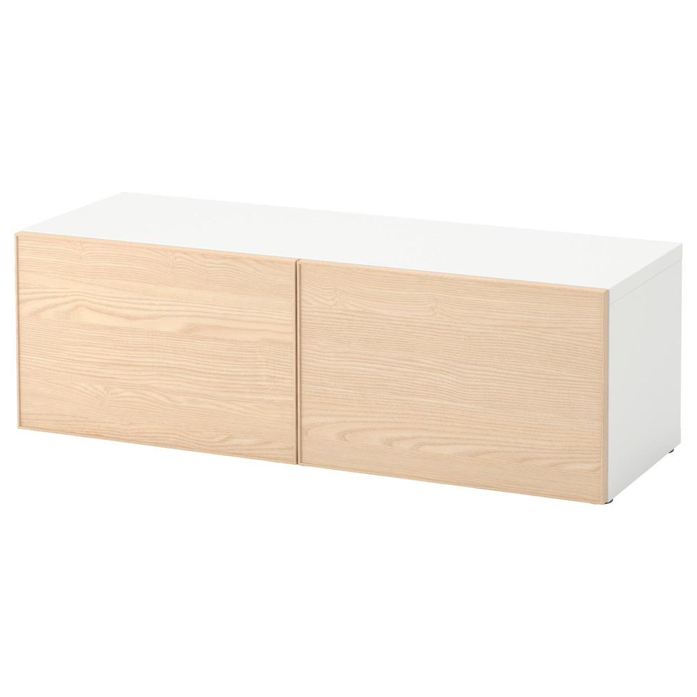 БЕСТО Стеллаж с дверьми - белый/Инвикен ясеневый шпон