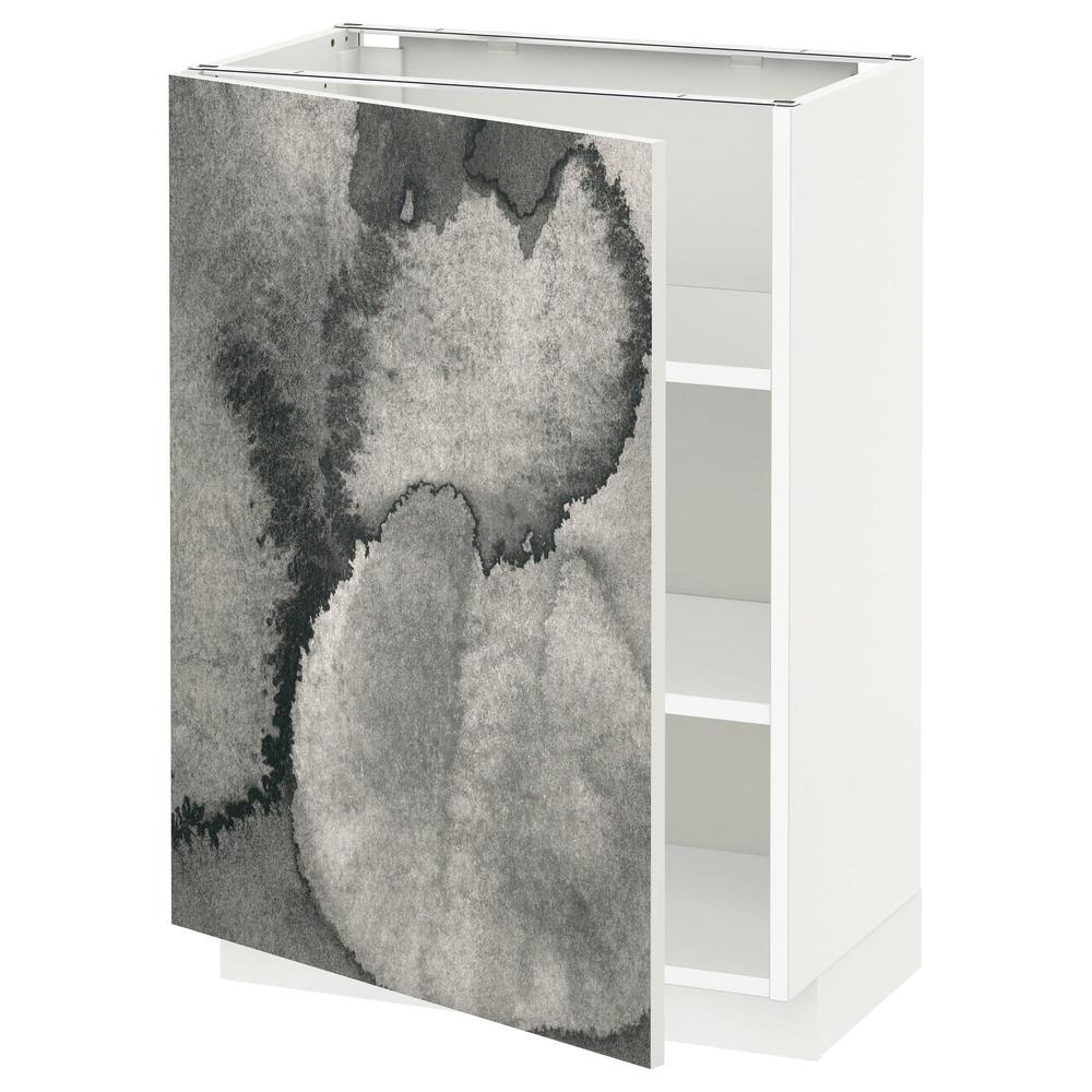 МЕТОД Напольный шкаф с полками - белый, Кальвиа с печатным рисунком, 60x37 см