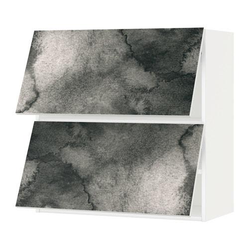 МЕТОД Навесной шкаф/2 дверцы, горизонтал - белый, Кальвиа с печатным рисунком, 80x80 см