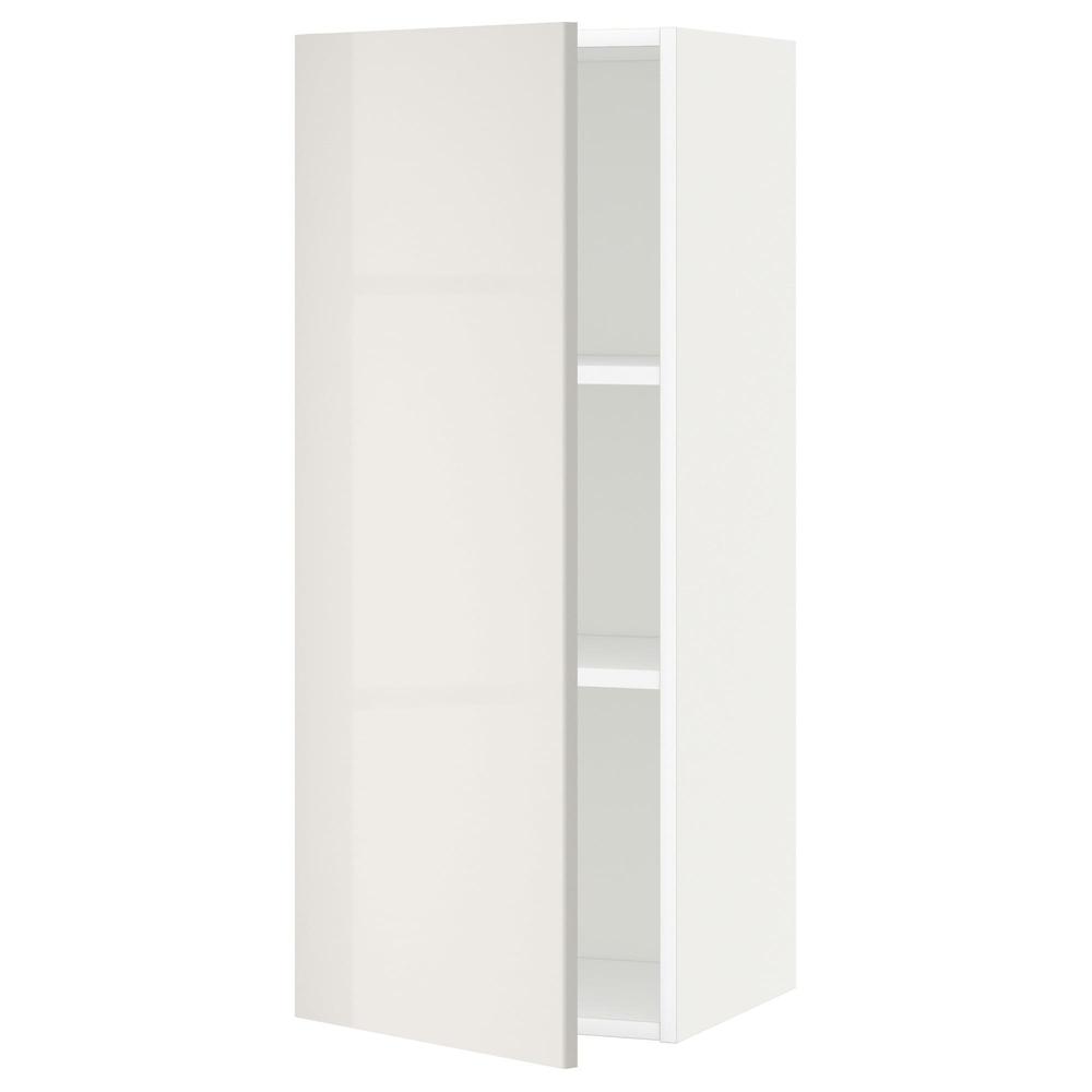 МЕТОД Шкаф навесной с полкой - белый, Рингульт глянцевый светло-серый, 40x100 см