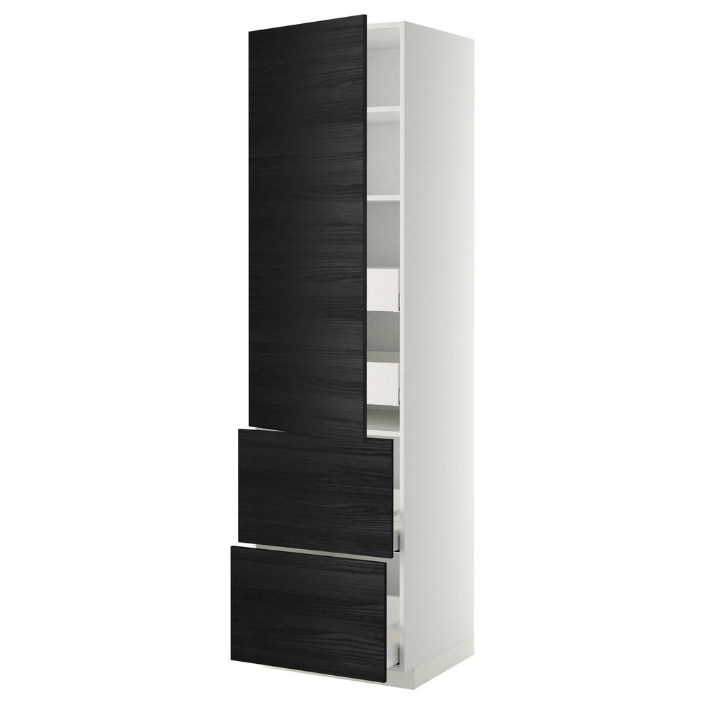 МЕТОД / МАКСИМЕРА Высокий шкаф+полки/4 ящика/2дверцы - белый, Тингсрид под дерево черный, 60x60x220 см