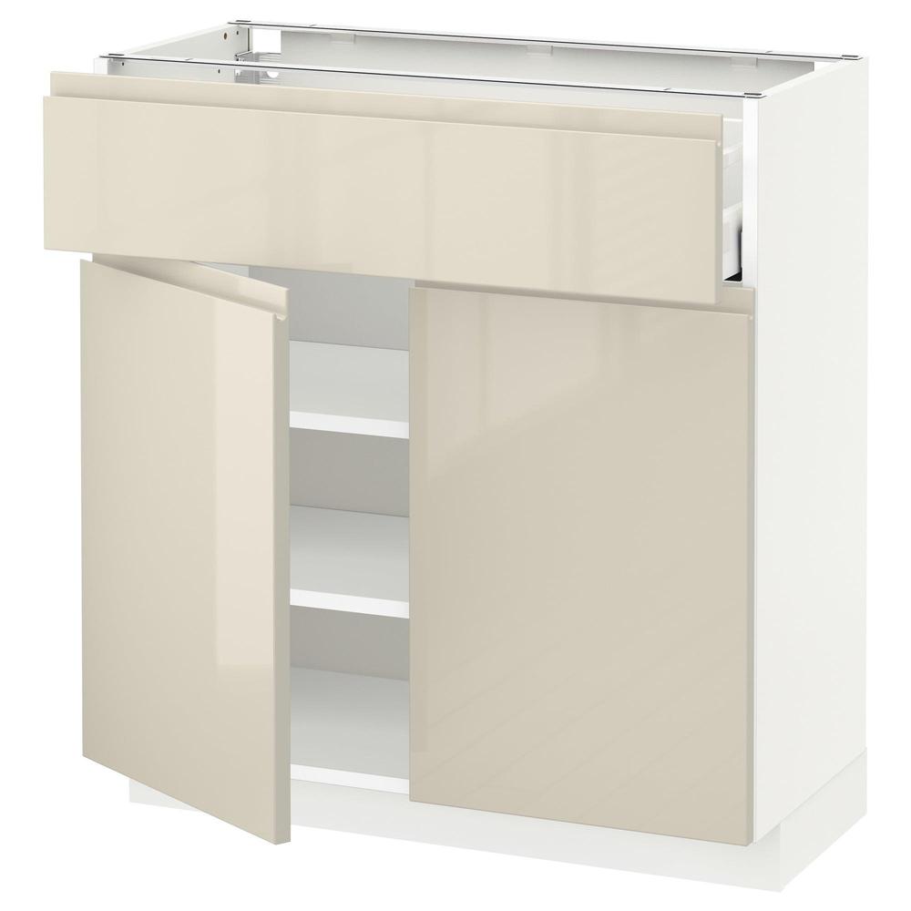 МЕТОД / МАКСИМЕРА Напольный шкаф+ящик/2дверцы - белый, Воксторп глянцевый светло-бежевый, 80x37 см