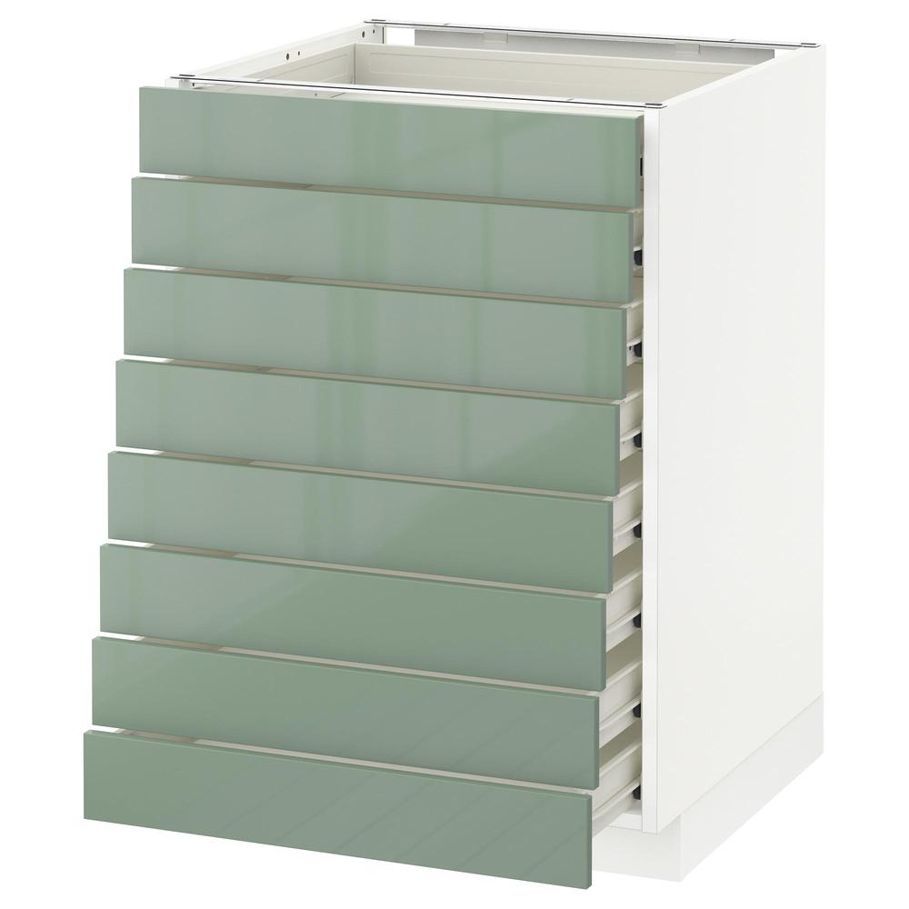 МЕТОД / ФОРВАРА Наполн шкаф 8 фронт/8 низк ящиков - белый, Калларп глянцевый светло-зеленый, 60x60 см