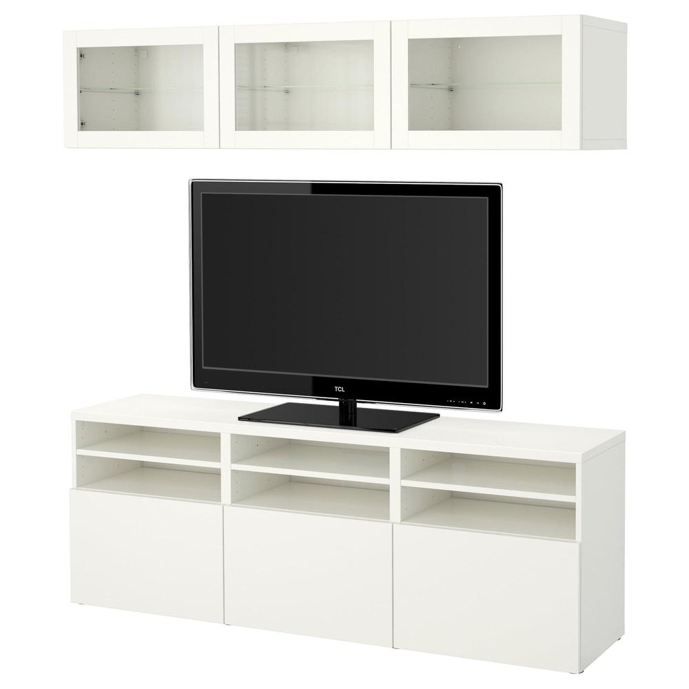 БЕСТО Шкаф для ТВ, комбин/стеклян дверцы - Лаппвикен/Синдвик белый прозрачное стекло, направляющие ящика, плавно закр