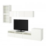 БЕСТО Шкаф для ТВ, комбин/стеклян дверцы - белый/Сельсвикен глянцевый/бежевый матовое стекло, направляющие ящика, плавно закр