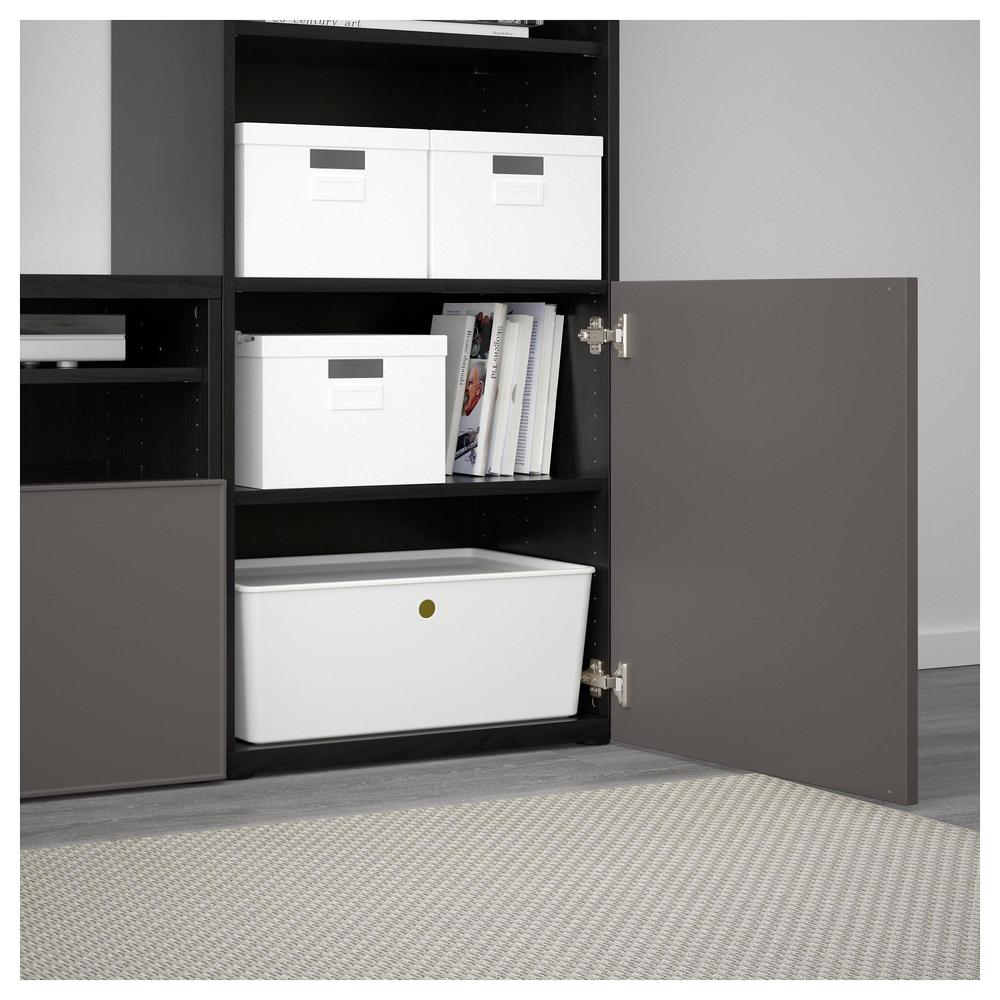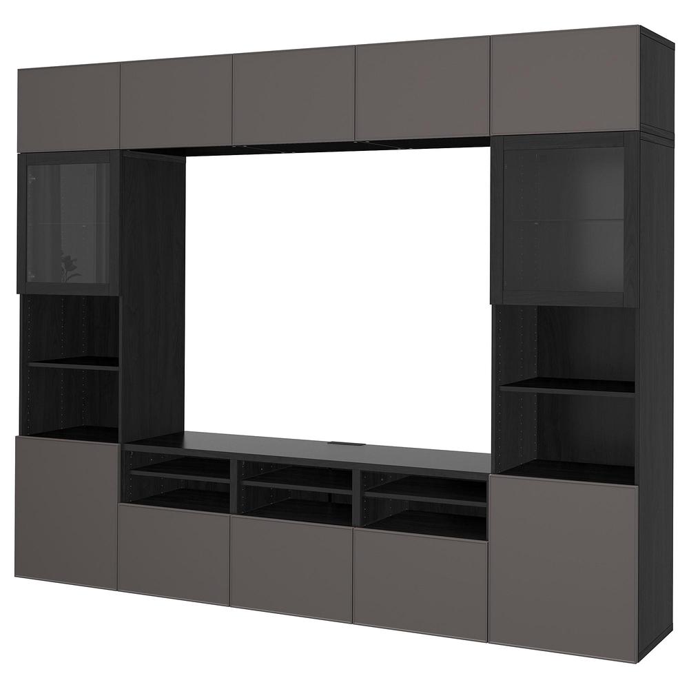 БЕСТО Шкаф для ТВ, комбин/стеклян дверцы - черно-коричневый Грундсвикен/темно-серый прозрачное стекло, направляющие ящика, плавно закр